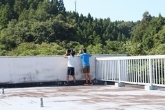 構図を教わった子供たちは、早速、タブレットを持って校内を歩き回りました。廊下から外の風景を切り取ってみたり、屋上など高いところから見下ろした構図を試してみたりしながら、自分の思いに合う風景を撮影しました。 これから彩色を進め、文化祭に飾る予定です。