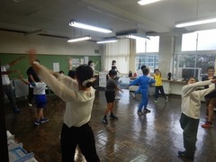 その後、先生から甘くて美味しいひとくちチョコレートを1個もらって食べました。すると… 「今食べたチョコレートのカロリー分、消費しましょう!」ということで、ラジオ体操を行いました。ところが…ラジオ体操1回終わっても消費されず、2回終わっても消費されず、ついに3回目に突入!!! 子供たちも保護者の方も汗だくになって、ラジオ体操を3回終えて、チョコレートのカロリーが消費されました。