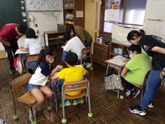 低学年は、24日にやってくるヤギのお世話について話し合っていました。 ヤギの世話は一人でするものではないので、相談が大切です。 子供たちは、サークルトークの形になって、話し合いました。