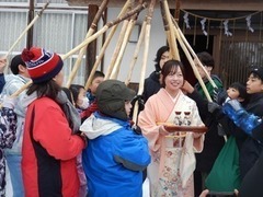 3・4年生は、総合的な学習で「桑取・谷浜のお宝を探そう」をテーマに活動しています。 400年以上の歴史があり、上越市無形民俗文化財に指定されている「嫁祝い」について、地域の方から話を聞き、自分たちもその伝統を守るお手伝いをしたいと、頑張りました。 まずは、オーマラに向けて、焼き草やお正月飾りを集めに回りました。各家を1軒1軒回り、大きな声で歌います。西横山小正月行事保存会の方から、「近年にないくらい大きな声で、元気がある」と、お褒めの言葉をいただきました。