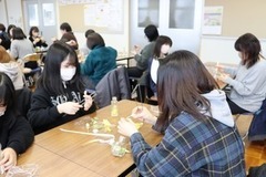 5年生は、親子の思い出として、「ハーバリウム」を作りました。 瓶の形も色々で、ドライフラワーの種類も多く、そのチョイスを楽しんでいたようです。ピンセットを使って瓶の中に配置する作業も難しそうでしたが、親子で楽しみながら制作していました。 リボンを結んで、袋に入れると、お店に売っているような素敵な「お花」が完成しました。