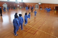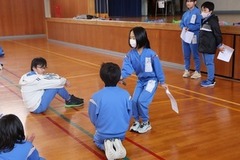 個人技の次は、縦割り班ごとの大繩跳びです。 大会前の1か月間に、5回の練習タイムがありました。各班ごとに跳び方を教え合ったり、縄を回す位置を調整したりして、本番に挑みました。 惜しくも最高記録が出なかった班もありましたが、中には100回超えをして、思わず歓声を上げる班もありました。 どちらにしても、チームで支え合い、共に喜び合う姿は、心の成長につながるのではないかと思いました。